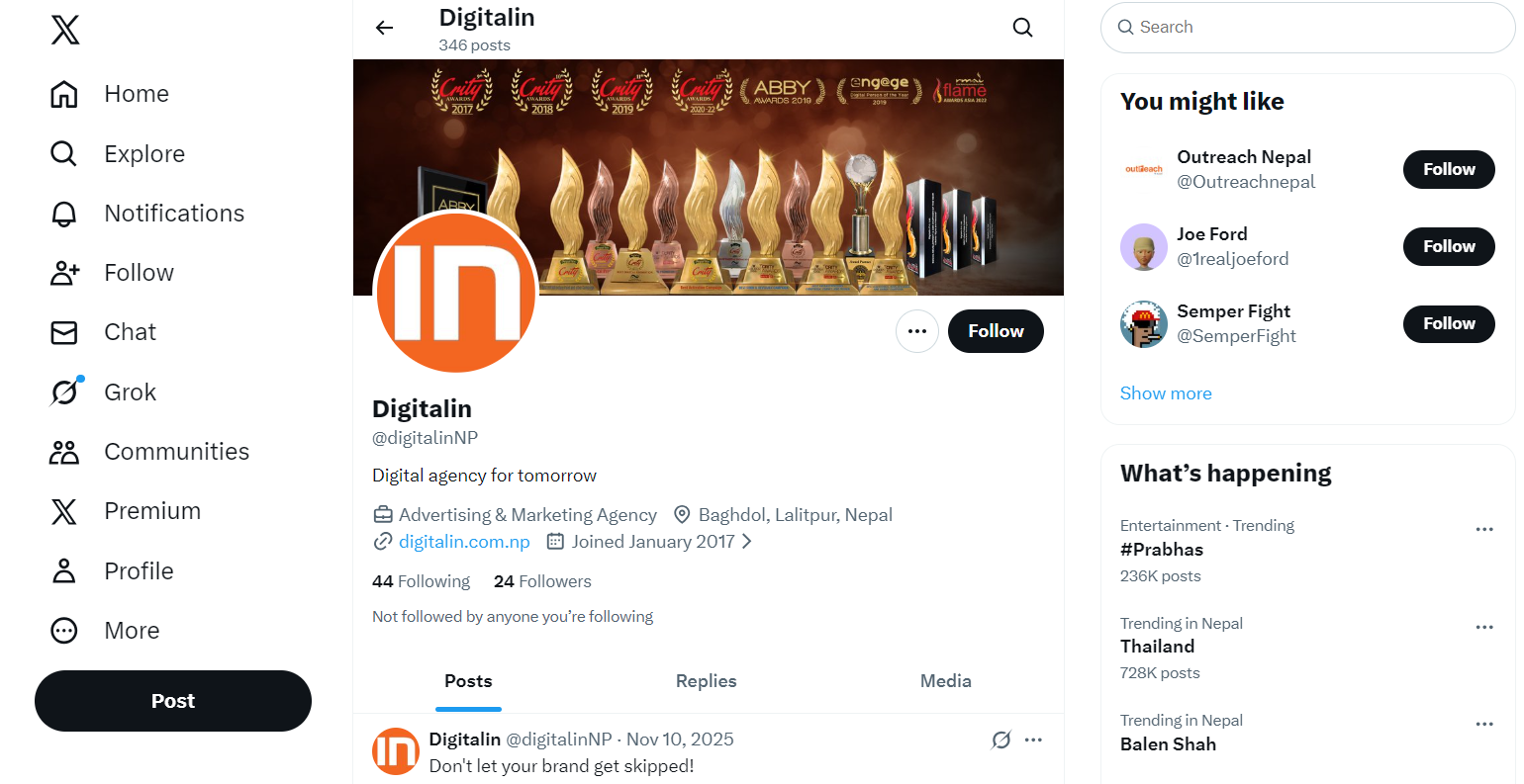 Recognized as one of the leading advertising agencies in Nepal, DigitalIn delivers result-driven solutions powered by the latest digital marketing innovations, helping brands stay ahead and connect with the right audience.