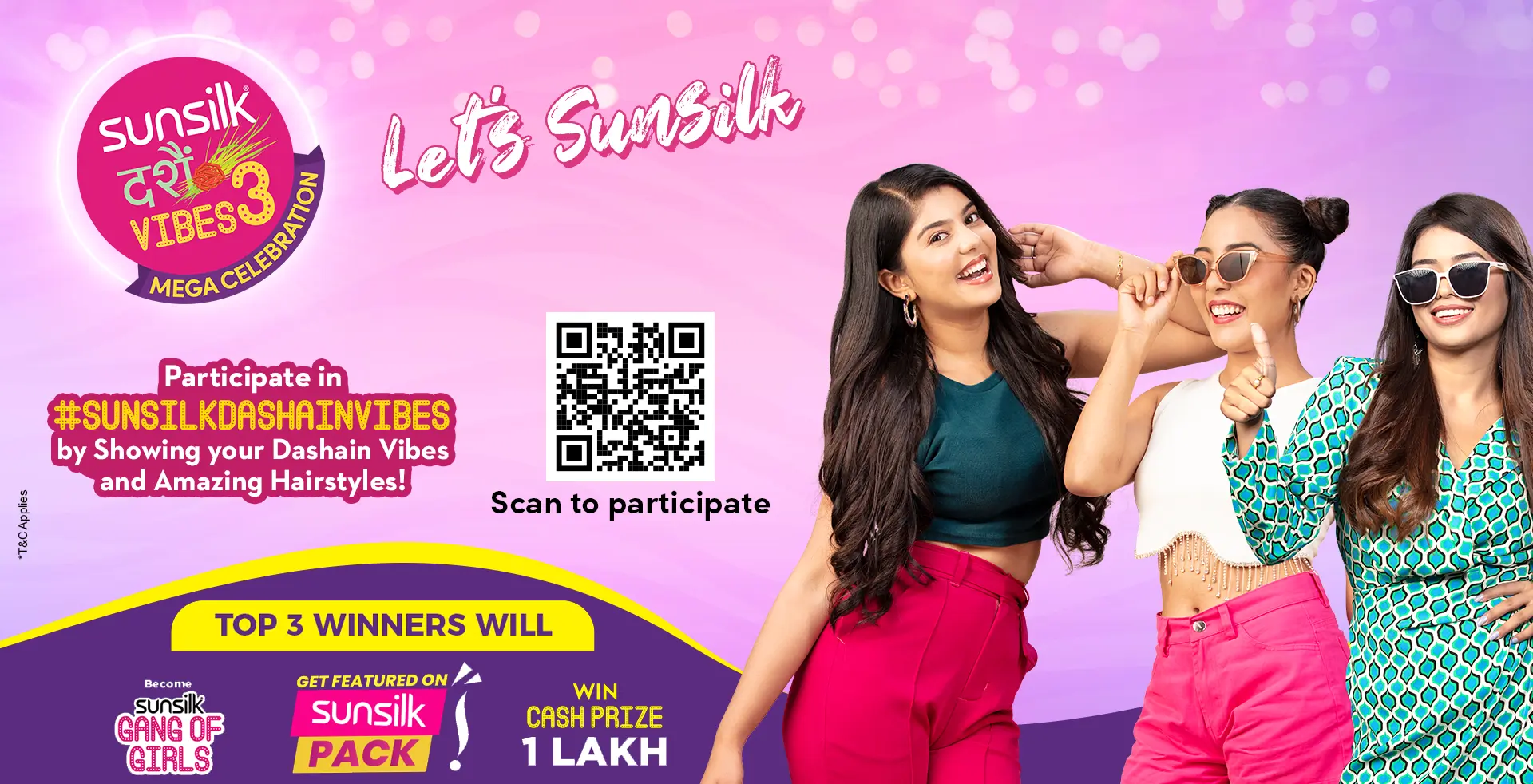 Embrace the festive spirit and showcase your stunning Dashain hairstyles with Sunsilk Dashain Vibes 3! Participate in the mega celebration by sharing your unique vibes for a chance to become part of the Sunsilk Gang of Girls, get featured on a Sunsilk pack, and win a grand cash prize of 1 Lakh. It's time to let your hair shine and make this Dashain your most glamorous one yet