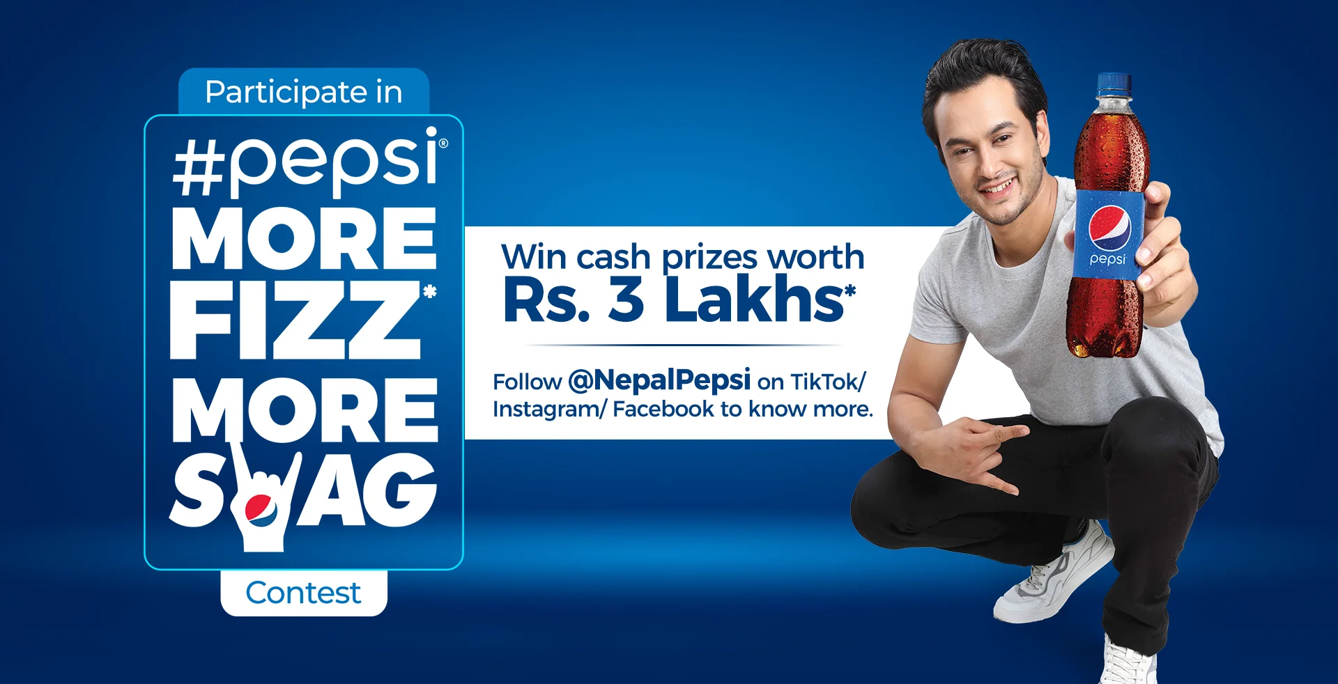 Take your swag to the next level and participate in the #pepsi More Fizz More Swag contest for a chance to win incredible cash prizes worth Rs. 3 Lakhs! Simply follow @NepalPepsi on TikTok, Instagram, or Facebook to join the movement and show us your boldest moves. Grab a bottle, feel the extra fizz, and let your unique style shine in this ultimate celebration of refreshment and attitude.
